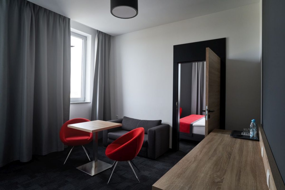 Dla najbardziej wymagających gości przygotowano 2 przestronne apartamenty VIP, które łączą nowoczesny design z najwyższym standardem wyposażenia. Każdy z pokoi i apartamentów oferuje niepowtarzalny widok na tor wyścigowy – to wyjątkowy atut, który podkreśla motoryzacyjny charakter miejsca.