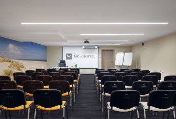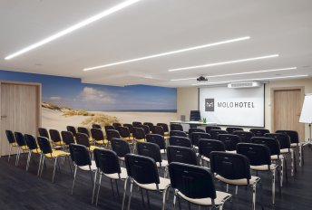 Dzięki świetnej lokalizacji umożliwiającej dowolne poruszanie się po Trójmieście oraz zapleczu konferencyjnemu, Hotel Molo dobrze sprawdzi się jako miejsce na organizację spotkań biznesowych. Oferuje dwie przestronne, kompleksowo wyposażone sale konferencyjne: Salę Morską przeznaczoną na maksymalnie 50 osób oraz większą, Salę Piaskową dla 80 uczestników. Wystrój obu pomieszczeń jest prosty i klasyczny. Ciemna, grafitowa podłoga w połączeniu z jasnymi ścianami i meblami wygląda elegancko i nowocześnie. Sale posiadają klimatyzację, ekrany sterowane pilotem, nagłośnienie z mikrofonami bezprzewodowymi, flipcharty oraz dostęp do bezprzewodowego internetu. Dzięki takiemu sprzętowi każde spotkanie może być przeprowadzone w ciekawy sposób, który spełni oczekiwania uczestników.