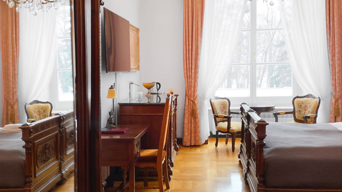 W zabytkowych wnętrzach Pałacu Sulisław znajduje się 14 luksusowych pokoi, urządzonych z najwyższą dbałością o detale. Każdy z nich posiada indywidualny charakter i wyjątkowy styl, który podkreśla pałacowy klimat miejsca. Komfortowe wyposażenie, miękkie tkaniny i starannie dobrane elementy wystroju tworzą atmosferę sprzyjającą pełnemu relaksowi. Prawdziwą perłą Pałacu jest Apartament Ambasadorski – przestronny, niemal stumetrowy apartament z dwiema sypialniami, dwiema łazienkami, kuchnią z jadalnią, salonem z kominkiem oraz dwoma tarasami z widokiem na malowniczy park.