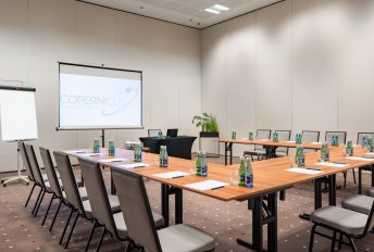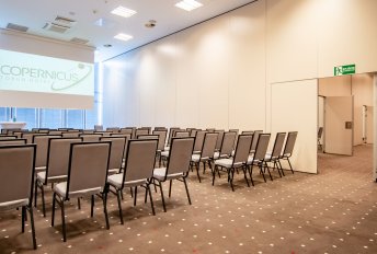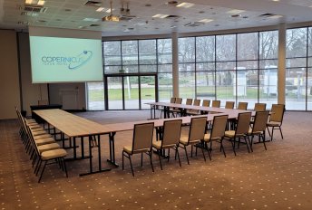 Copernicus Toruń Hotel to prestiżowe centrum konferencyjne, które doskonale łączy funkcjonalność nowoczesnych rozwiązań z elegancją i komfortem. Obiekt oferuje blisko 2000 metrów kwadratowych przestrzeni konferencyjno-eventowej, stworzonej z myślą o organizacji spotkań biznesowych, szkoleń, kongresów, bankietów i wydarzeń specjalnych. Na Gości czeka 13 nowoczesnych sal konferencyjnych, z których największe – Terra i Luna – zapewniają możliwość elastycznej aranżacji oraz dostęp zarówno do światła dziennego, jak i zaawansowanego oświetlenia sztucznego.