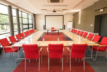 Zaplecze konferencyjne – sześć sal konferencyjnych - klimatyzowane i zróżnicowane pod względem wielkości - są doskonale przystosowanie na przyjęcie małych, średnich i dużych (do 350 osób) grup Gości, w pełni wyposażone w sprzęt techniczny i dostęp do Internetu.