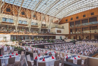 Centrum Konferencyjne Hotelu Arłamów **** łącznie oferuje 3500 m2 nowoczesnej i profesjonalnej powierzchni biznesowej. Znajduje się tutaj aż 14 sal konferencyjnych, które mogą obsłużyć od kilkunastu do kilkuset uczestników.