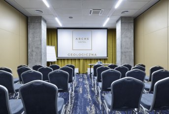 Arche Hotel Geologiczna ma w swojej ofercie 5 sal o zróżnicowanej wielkości, których łączna powierzchnia wynosi 150 m2. Pomieszczenia te są świetną bazą do zorganizowania wszelkiego rodzaju spotkań biznesowych i edukacyjnych - m.in. konferencji, szkoleń, warsztatów, wykładów, sympozjów, prelekcji czy prezentacji.