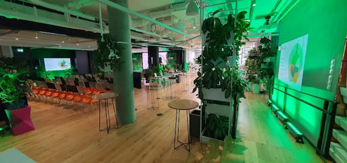 Obiekt dysponuje zaawansowanym zapleczem technicznym, w tym dużym ekranem LED Samsung (3,84 x 2,16 m), trzema monitorami 85”, sceną 6 x 3 m, profesjonalnym nagłośnieniem i oświetleniem. Sale warsztatowe wyposażone są w dotykowe flipcharty i mobilne ekrany. Całość uzupełnia stabilne oraz zapasowe łącze internetowe, co gwarantuje sprawną realizację każdego wydarzenia.