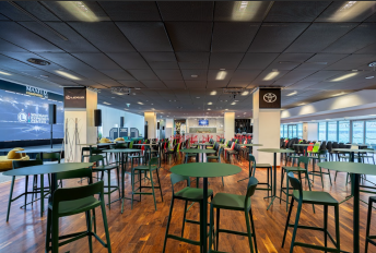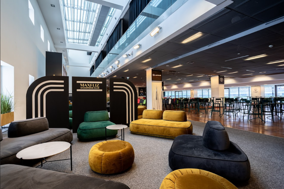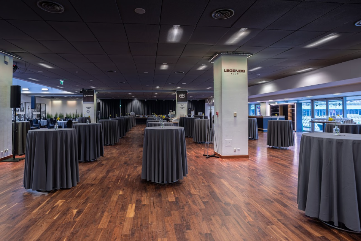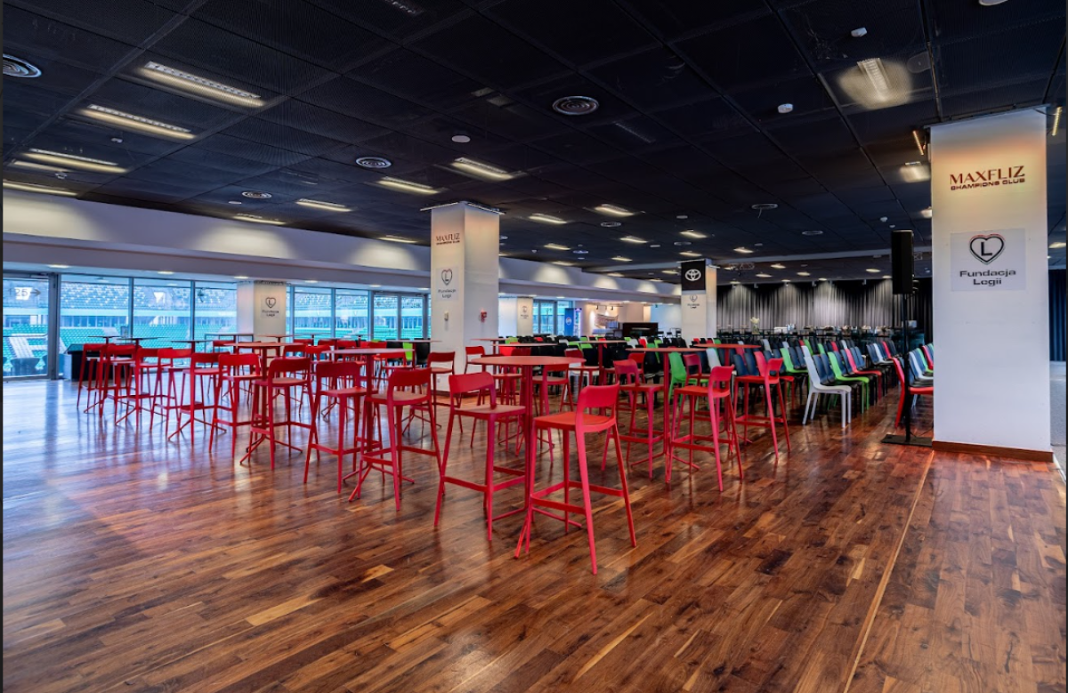 Biznes Klub to przestrzeń łącząca elegancję z atmosferą stadionu.Otwarty charakter sali pozwala na organizację zarówno prezentacji, jak i wydarzeń o bardziej swobodnej formule. Po połączeniu sal: Legends, Gold i Champions daje nam przestrzeń o ponad 2000m2.