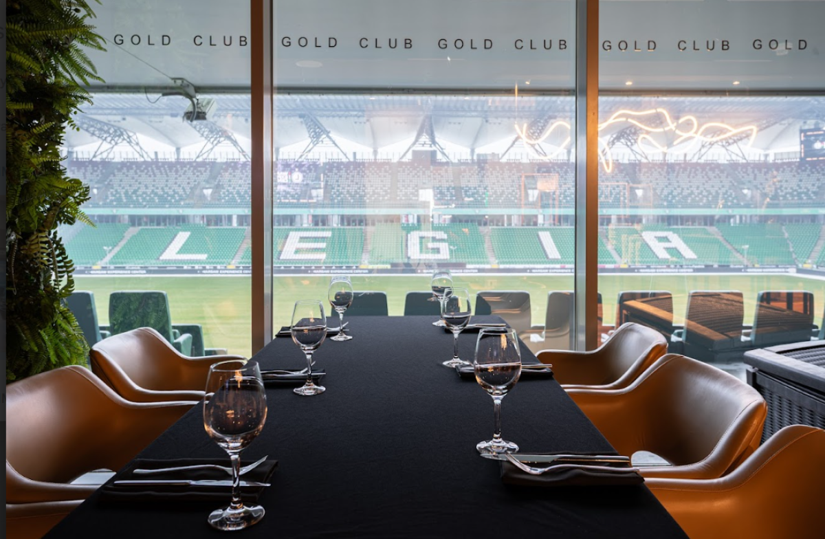 Gold to elegancka, reprezentacyjna przestrzeń z panoramicznym widokiem na płytę stadionu. Sprawdza się podczas spotkań biznesowych, kolacji firmowych, prezentacji czy mniejszych konferencji. Naturalne światło oraz bezpośredni widok na murawę tworzą wyjątkowe tło dla wydarzeń o bardziej kameralnym charakterze.
