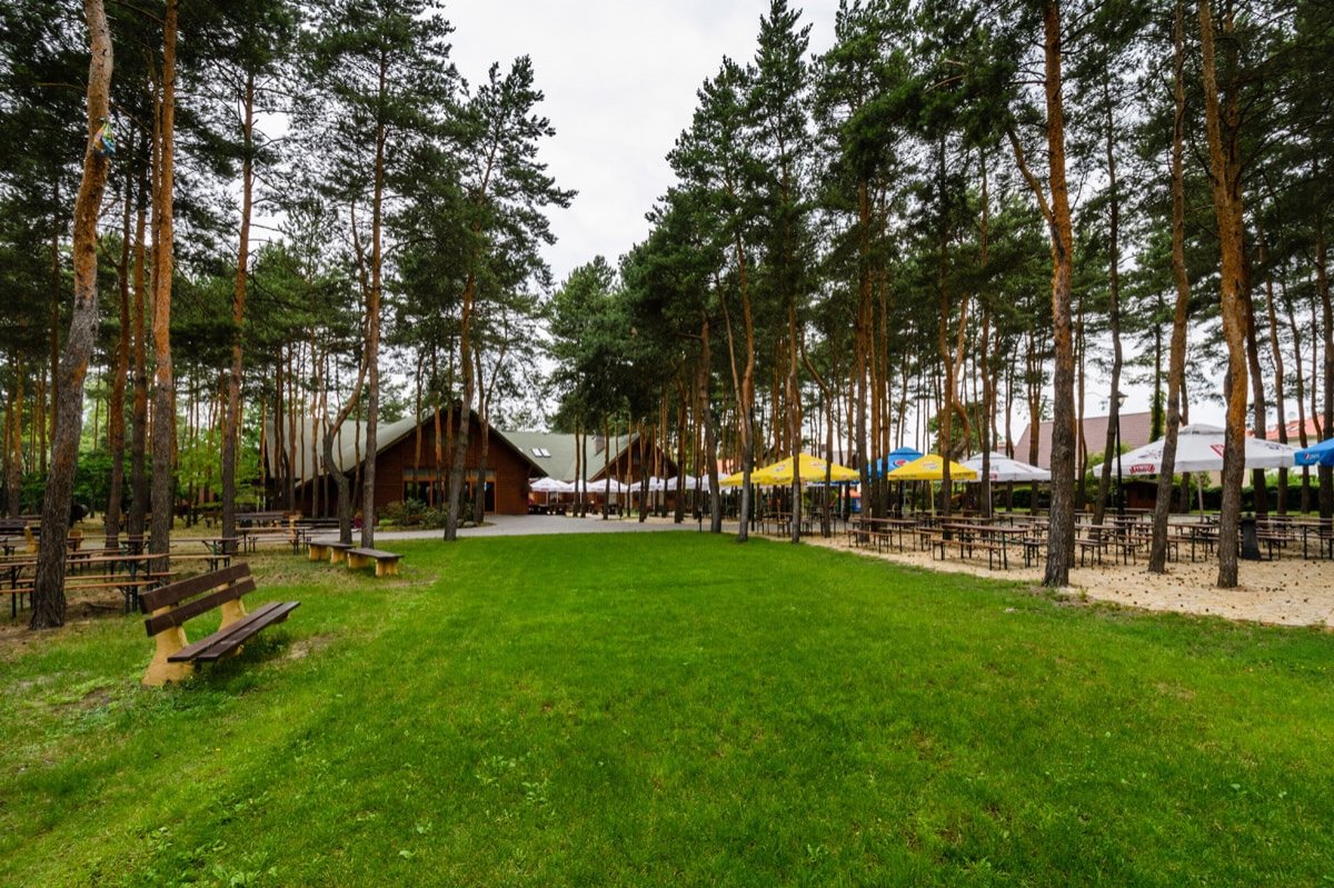 Obiekt otoczony jest pięknym, przestronnym terenem zielonym, który świetnie sprawdza się jako tło zajęć team-buildingowych.