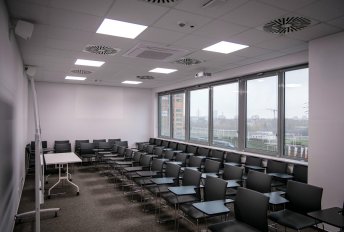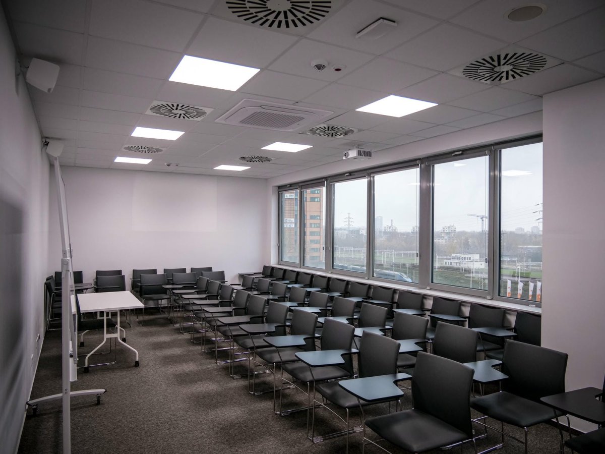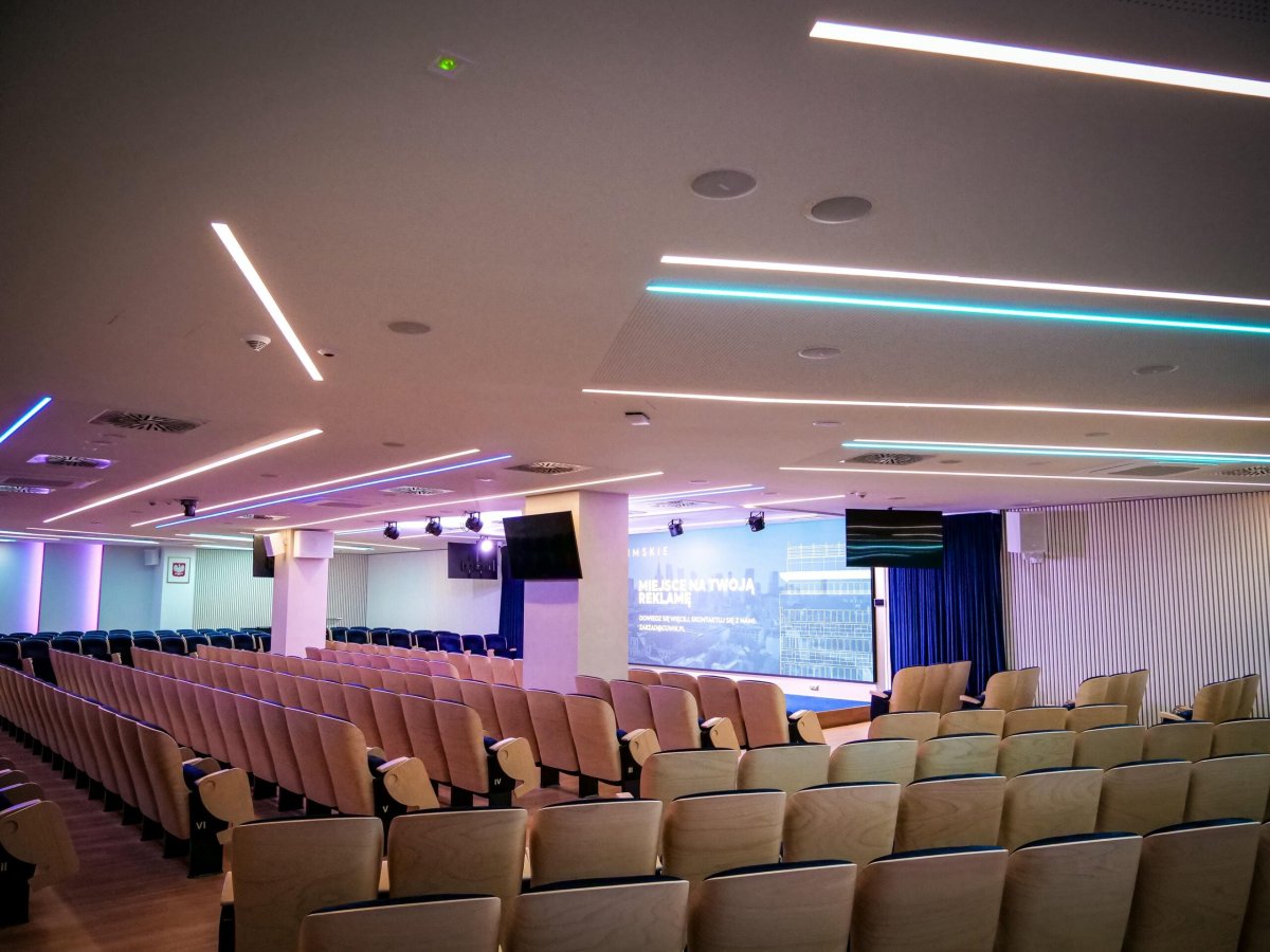 Przeszklona bryła budynku umożliwia dostęp do naturalnego światła dziennego, co znacząco podnosi jakość pracy i sprzyja koncentracji, a jednocześnie stwarza atrakcyjne warunki do realizacji sesji zdjęciowych i wydarzeń specjalnych. Profesjonalny system nagłośnienia oraz zestaw mikrofonów pozwalają na sprawną obsługę konferencji, prezentacji i spotkań biznesowych.