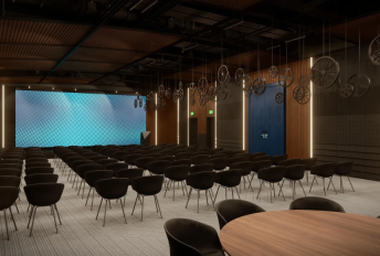 Dzięki zaawansowanemu wyposażeniu AV, w tym dużemu ekranowi LED, dwóm dodatkowym ekranom składanym oraz profesjonalnemu nagłośnieniu i oświetleniu, każde wydarzenie zyskuje niezrównaną jakość. Dodatkowo, Event Hall oferuje możliwość podziału na mniejsze przestrzenie dzięki ścianie modułowej, co pozwala dostosować powierzchnię do indywidualnych potrzeb.