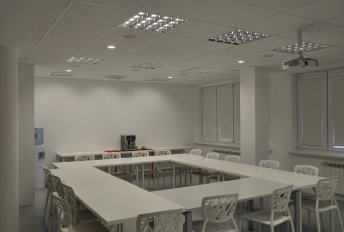 Przestrzeń konferencyjna to 80 m2, do której dołączony jest przestronny balkon. Dzieli się ona na salę główną o powierzchni 44 m2 oraz na dwa mniejsze pomieszczenia - 12 m2 oraz 2,5 m2.