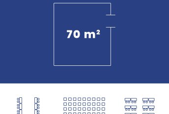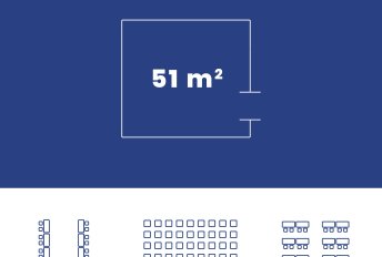 Obiekt dysponuje trzema, w pełni wyposażonymi pomieszczeniami o wielkości: 432 m2, 500 m2 oraz 550 m2. Dzielą się one na mniejsze sale i umożliwiają ustawienie na trzy sposoby. Powyższa tabela prezentuje liczebność poszczególnych kombinacji.