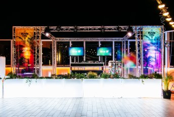 Większe i bardziej wymagające wydarzenia można zorganizować na tarasie otwartym. Jest to idealne miejsce na tematyczny event, imprezę integracyjną czy nowoczesną konferencję. Dodatkowo, znajduje się tam bar, konsoleta DJ'a oraz wygodne miejsca do siedzenia.