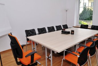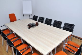 Właściciele Meeting Room wychodzą naprzeciw wszystkim biznesmenom, którzy szukają odpowiedniego miejsca na zorganizowanie małej konferencji czy kameralnego spotkania biznesowego w przystępnej cenie. Na terenie warszawskiego biura znajduje się przestronna Sala Konferencyjna na ok. 12 osób. Na 17,8 m2 można ustawić stoły tak, by jak najlepiej odpowiadały potrzebom organizatorów i charakterowi wydarzenia.