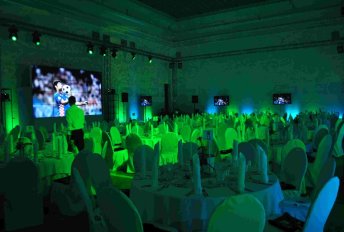 Ciekawą atrakcją jest elewacja obiektu, współgrająca z organizowanymi przedsięwzięciami. Oznacza to, że na fasadzie możliwe jest wyświetlenie m.in. projekcji.