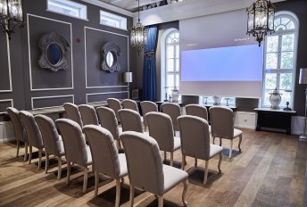 Pałac Mała Wieś udostępnia kilkanaście sal konferencyjno-bankietowych oraz salonów biznesowych, w których można zorganizować wydarzenie firmowe. Podczas dużych eventów można wykorzystać Salę Wielką mogącą pomieści do 550 osób w układzie kinowym. Mniejsze saloniki posiadają charakter muzealny, zachęcając do planowania spotkań na eleganckich sofach w pięknej, pałacowej aranżacji.