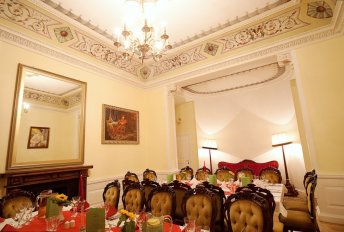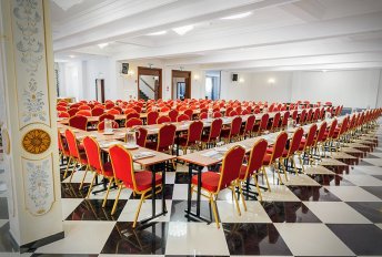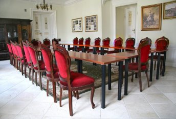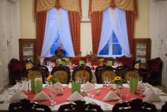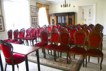 Sala Empirowa posiada wyjście na balkon. Goście mogą podziwiać panoramę całego terenu, w tym rzeźbioną fontannę i kwiecisty ogród. Sala Portretowa i Sala Purpurowa zachwyca zabytkowymi, kamiennymi kominkami. Dodatkowo można wykorzystać także Salę Teatralną, Restauracyjną oraz Konferencyjną, w których świetnie sprawdzają się uroczyste kolacje, imprezy firmowe oraz wystawne bankiety.