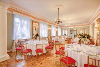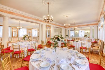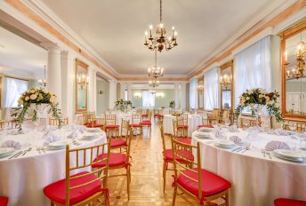 Blisko 450 m2 powierzchni, którą dysponuje pałac, daje szerokie możliwości organizacji najpiękniejszych przyjęć i niezapomnianych wydarzeń biznesowych.
