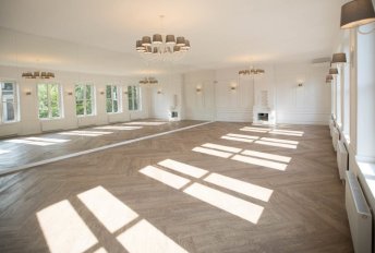 Jej przeciwieństwem jest Sala Kominkowa, jasna, z przestronnymi oknami i stylowym kominkiem. Jest idealna na spotkania biznesowe i bankiety.