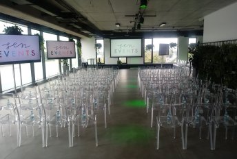 Sen Events jest absolutnie wyjątkowym miejscem na organizację eventów w Warszawie. Z powodzeniem mogą się tam odbyć nawet najbardziej wymagające konferencje, szkolenia, bankiety, kongresy czy sympozja. Przestrzeń obiektu to aż 350 m2, która daje niemal nieograniczone możliwości organizacyjne. Z obiektu rozpościera się zachwycający widok na Wisłę oraz PGE Narodowy.