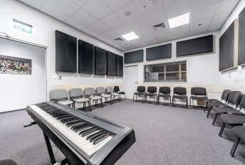 Sala wokalna wraz ze studiem nagrań to dobre miejsce na ćwiczenia wokalne i nagrania studyjne (w tym w ramach warsztatów prowadzonych dla pracowników firm).