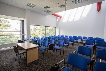 Ponadto, można także skorzystać z bogatej oferty sal dydaktycznych. Zarówno na Kampusie Jutrzenki, jak i na Kampusie Jagiellońska są one zróżnicowane, a więc odpowiednie dla wszelkiego rodzaju przedsięwzięć i dopasowane do liczebności grup. Umożliwiają zaproszenie od 20 do 120 osób.