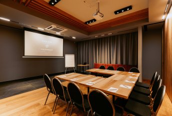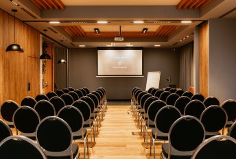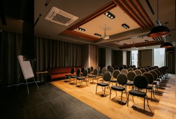 VISLOW Resort posiada klimatyzowaną salę konferencyjną, którą można podzielić na dwa mniejsze pomieszczenia. W największej konfiguracji jest ona w stanie pomieścić do 80 osób w ustawieniu teatralnym. Sala na konferencję w VISLOW Resort została kompleksowo wyposażona oraz przygotowana do organizacji najbardziej wymagających spotkań dla zróżnicowanych pod względem wielkości grup. Można w niej korzystać m.in. z flipcharta, projektora multimedialnego, ekranu oraz szybkiej sieci Internetu.