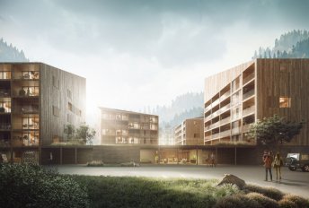 Z kolei główną inspiracją okazały się swobodnie stojące na górskiej polanie drewniane chaty, stąd w projekcie dominacja drewna. Projekt zakłada też skosy i proporcje. Architektura pawilonów została tak opracowana, by poszczególne pawilony łączyła funkcjonalnie podziemna kondygnacja przykrytą zielonym dachem w formie multifunkcyjnej łąki.