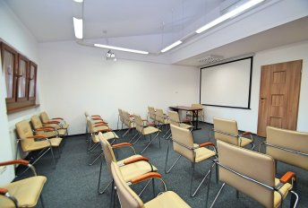 Wyposażenie standardowe obejmuje: rzutnik, ekran, flipchart oraz WiFi.