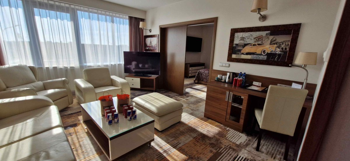 Dostępne są pokoje jednoosobowe, dwuosobowe oraz mały apartament. Dla wszystkich Gości przygotowanych zostało 111 nowoczesnych i klimatyzowanych pomieszczeń (w tym 1 apartament, 8 pokoi o podwyższonym standardzie Junior Suite i 3 pokoje przystosowane do potrzeb osób niepełnosprawnych). Każdy z pokoi wyposażono w: