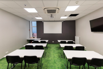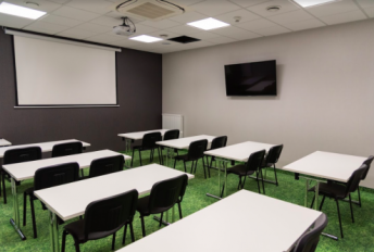 Maksymalnie sala konferencyjna może pomieścić grupy liczące sobie 25 osób, dzięki czemu świetnie nadaje się podczas szkoleń, warsztatów, meetingów lub sesji coachingowych.