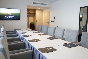 Sala Sofia (obejrzyj tutaj) jest jasna i nowocześnie urządzona. Posiada doskonałe oświetlenie sztuczne, dzięki czemu praca w niej jest przyjemna i efektywna. Dostępna jest także Sala Olimpia (obejrzyj tutaj), która posiada klimatyczny wystrój. Idealnie podkreśla podniosły charakter organizowanych tutaj uroczystości, imprez oraz bankietów. Goście mogą zasiąść w układzie teatralnym lub przy okrągłych stołach.