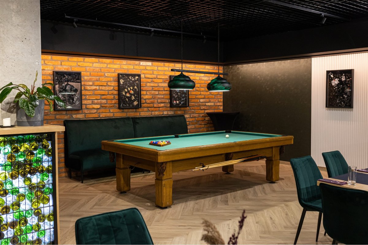 Sala Klubowa to przestrzeń o powierzchni około 125 m², którą można elastycznie zagospodarować na różne typy spotkań i wydarzeń, zarówno biznesowe, jak i towarzyskie. Sala zostało zaprojektowane z myślą o komforcie uczestników i wyróżnia się klimatycznym, niebanalnym charakterem, łącząc surowe elementy wnętrza z przytulnym designem.