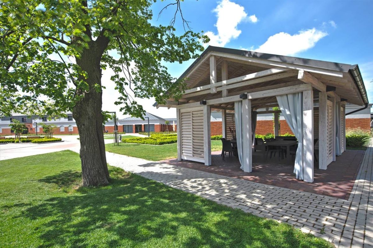 Rozległy teren zielony oraz profesjonalne boiska pozwalają na organizację gier zespołowych i team-building'owych na świeżym powietrzu. Dużym atutem jest także nowoczesny namiot plenerowy, w którym można organizować różnorodne eventy.