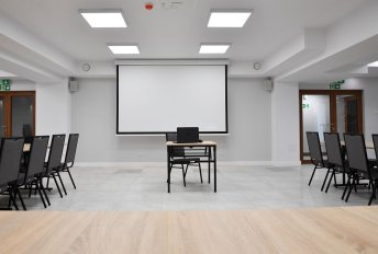 Ponadto w sali wydzielone jest miejsce na organizację poczęstunku i przerw kawowych.