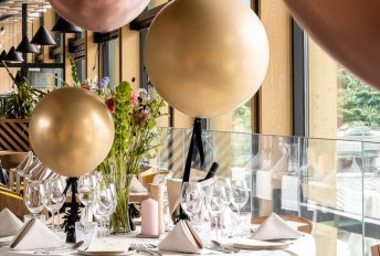 Restauracja oferuje dwa niezależne piętra, każde z własnym barem, co gwarantuje sprawną obsługę i komfort zarówno podczas kameralnych spotkań, jak i dużych przyjęć. Elastyczna aranżacja wnętrz pozwala dostosować układ sal, dekoracje oraz charakter obsługi do indywidualnych oczekiwań Gości. Dzięki temu każde wydarzenie – od uroczystej kolacji, przez rodzinne biesiady, aż po profesjonalne prezentacje i spotkania biznesowe – zyskuje wyjątkową oprawę.