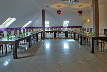 Pomieszczenie odznaczające się eleganckim wystrojem i stonowaną kolorystyką, na pewno urzeknie wszystkie osoby planujące organizację szkolenia lub konferencji w Zajeździe Euforia & Restauracja Spichlerz.